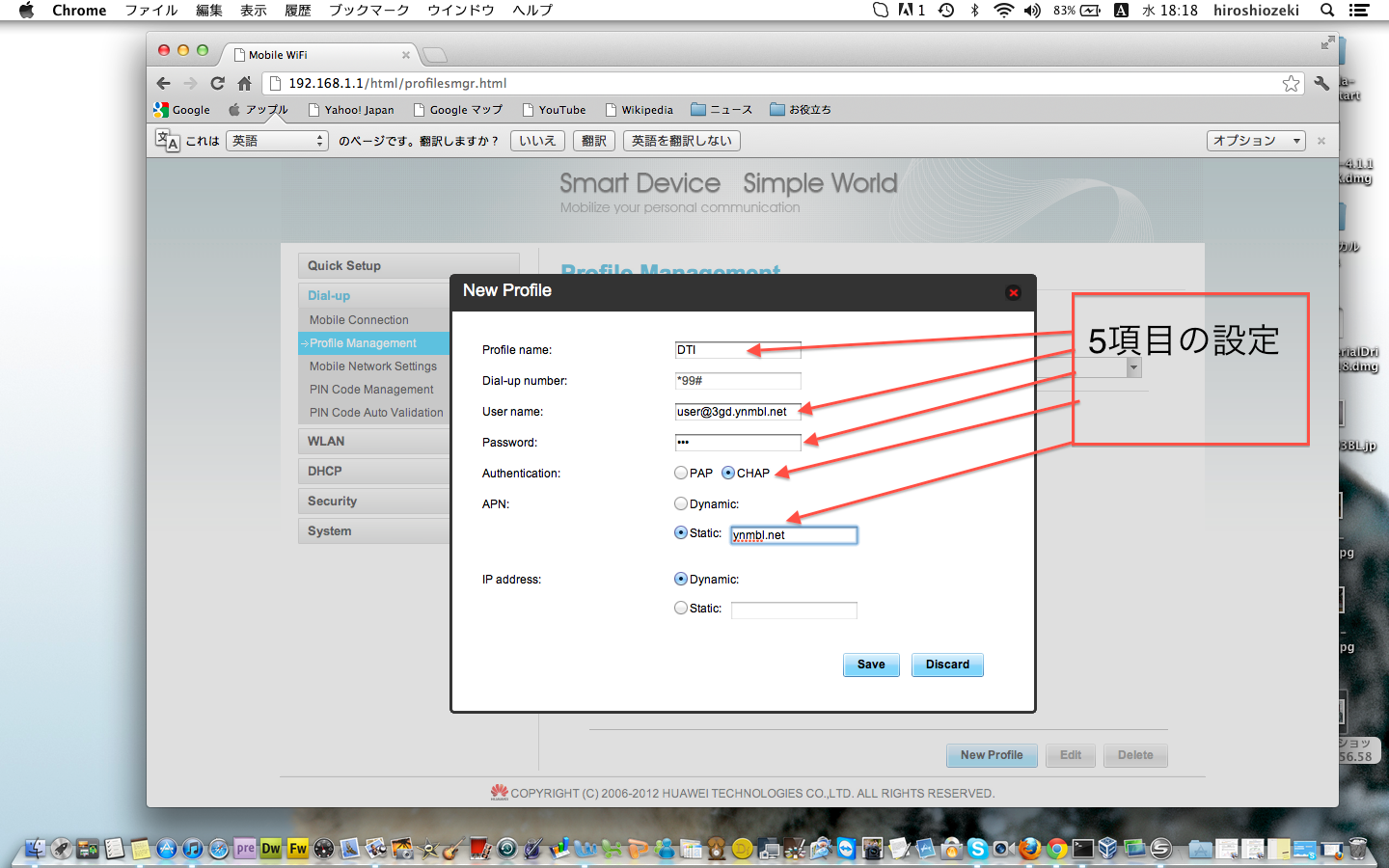 設定画面が出たらNewProfileをクリックしてDTIの情報の入力します。